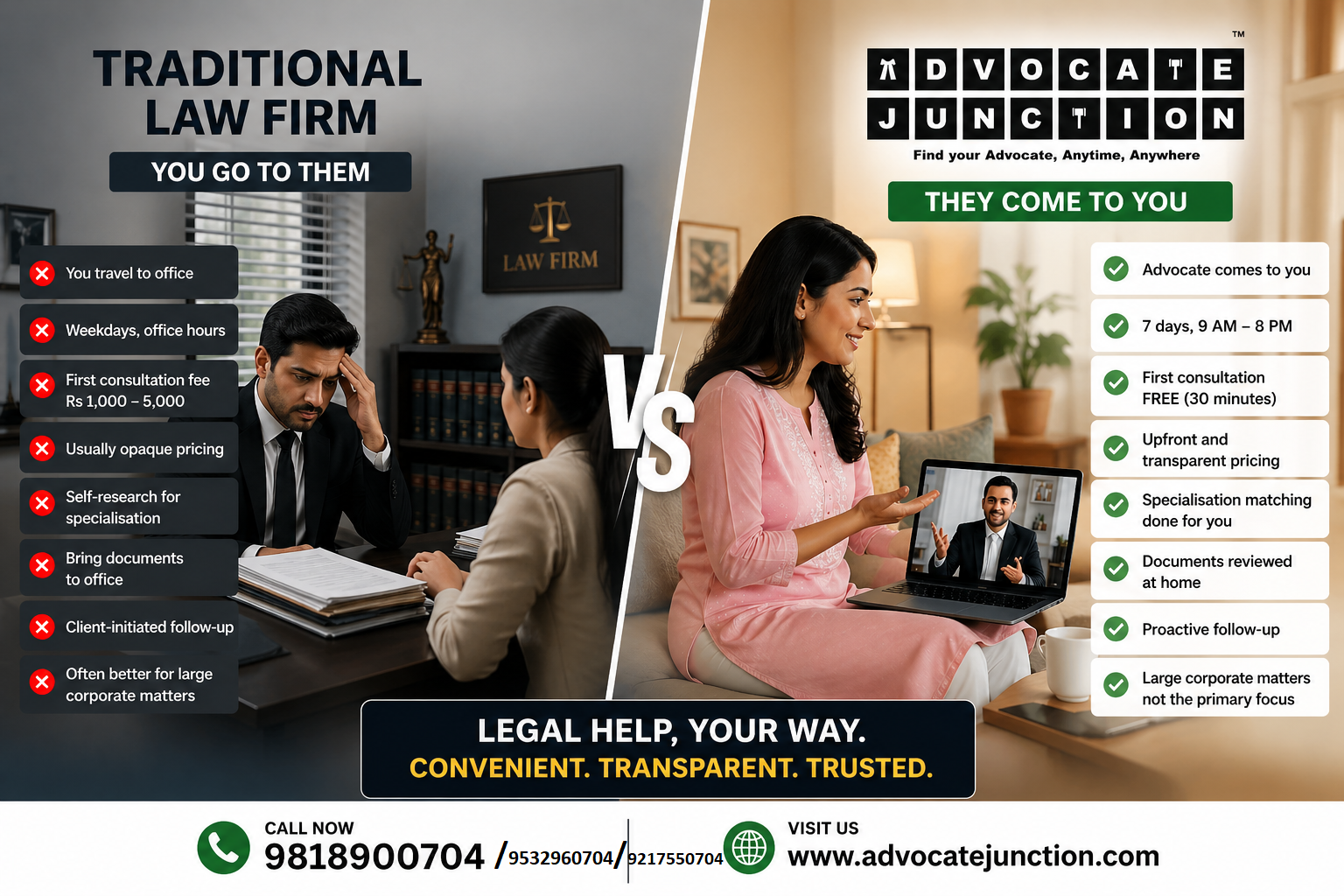 AdvocateJunction vs Traditional Law Firms in Delhi NCR: Which Is Better for You? Introduction: This Is Not an Attack on