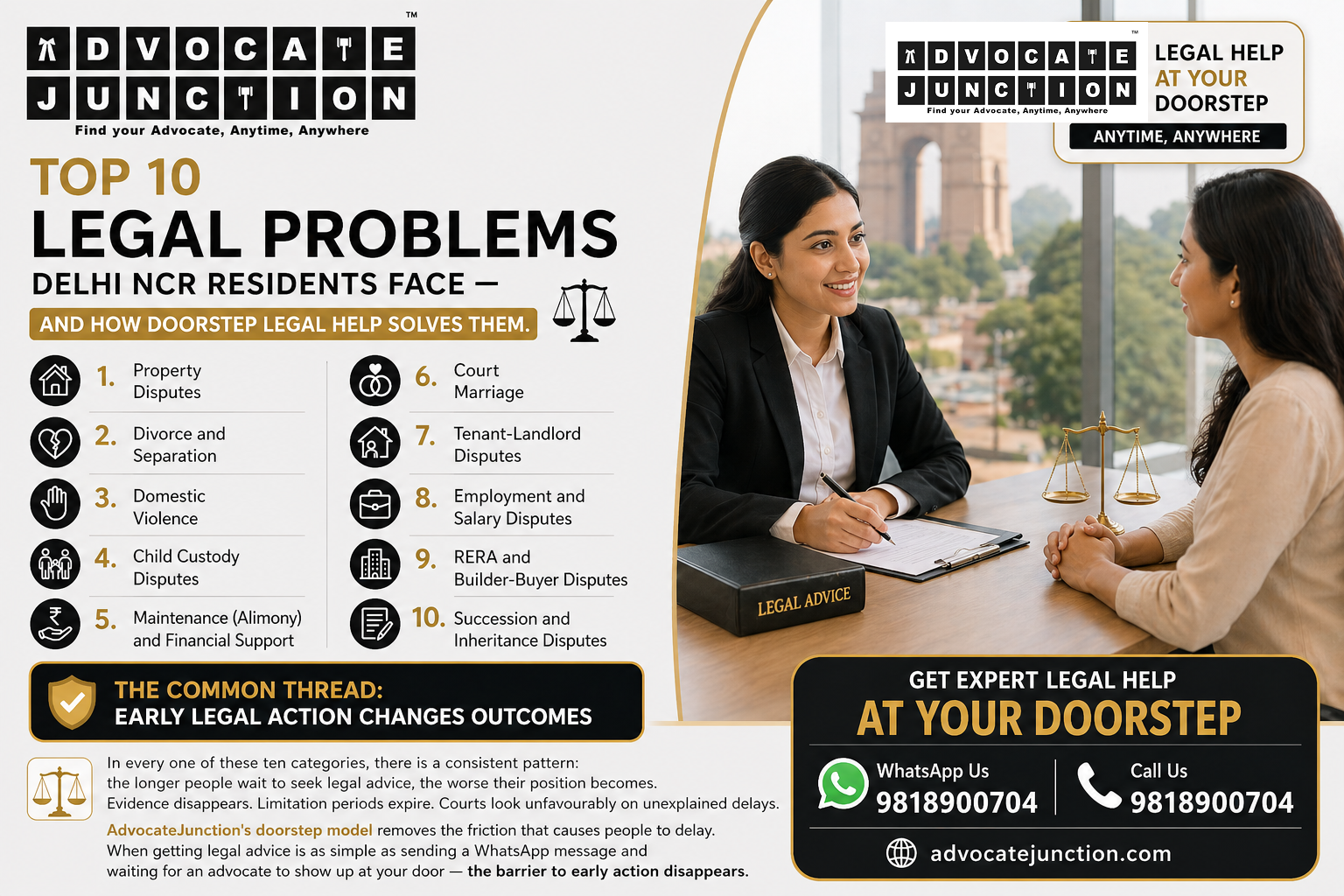 Top 10 Legal Problems in Delhi NCR and How Doorstep Legal Service Solves Them | AdvocateJunction